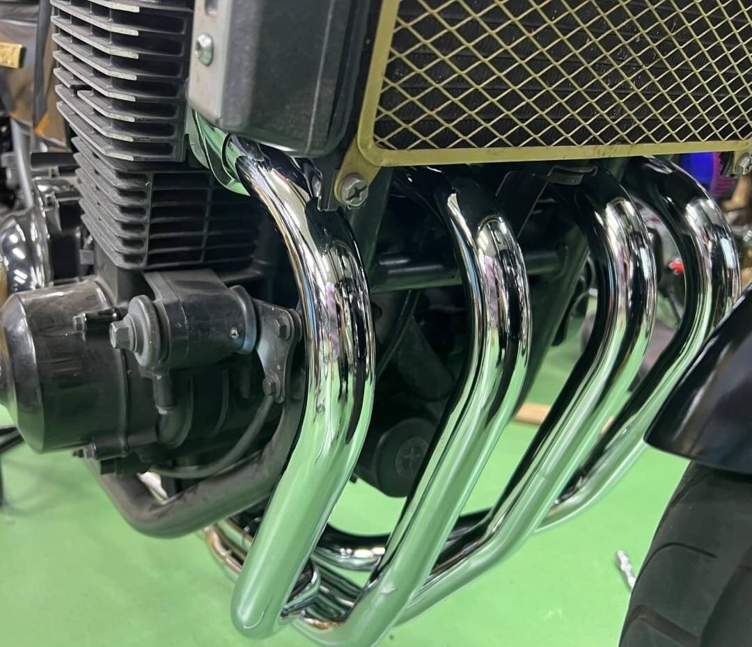 REDSTAGE福岡よりkawasakiZRX400用の4-2-1マフラーを完成させました。水冷エンジンの常識を覆す驚きの音切れ、音質、スタイルに成功致しました。空冷エンジンじゃないと出せないと言われている音質を超えるかの様なサウンドを響き渡らせます!是非ご体験ください。