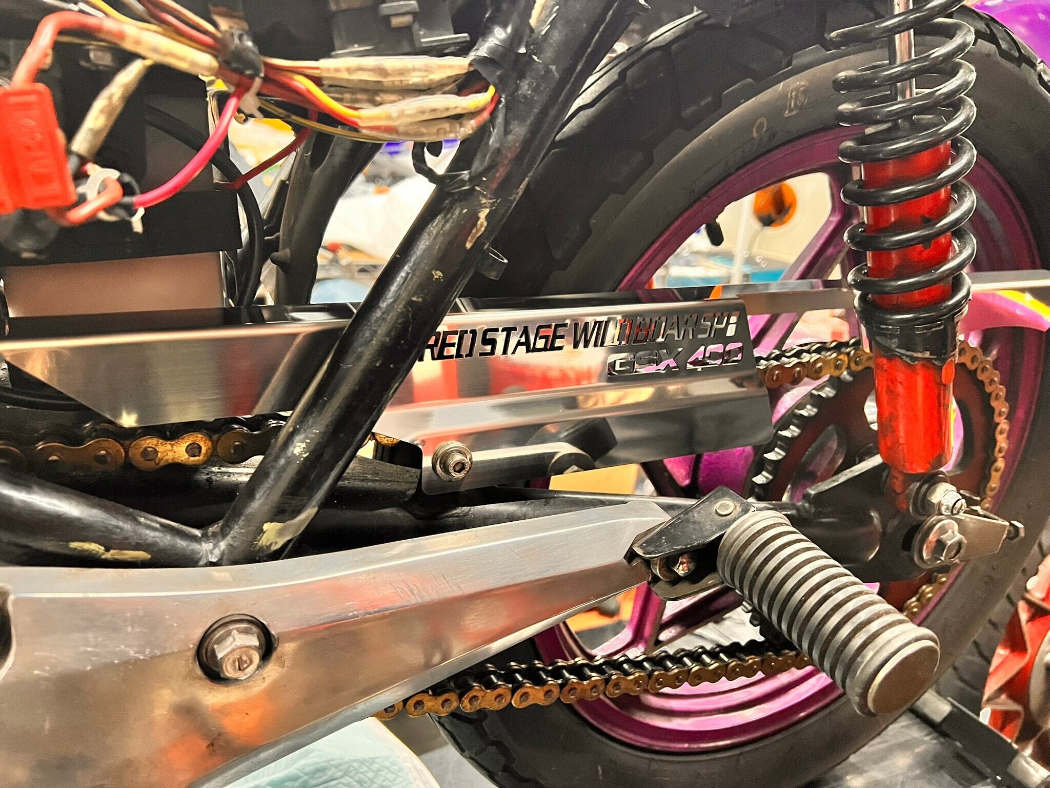 オリジナル チェーンケース GSX400E ザリ用(鏡面ステンレス製) REDSTAGE GSX400ロゴ入り