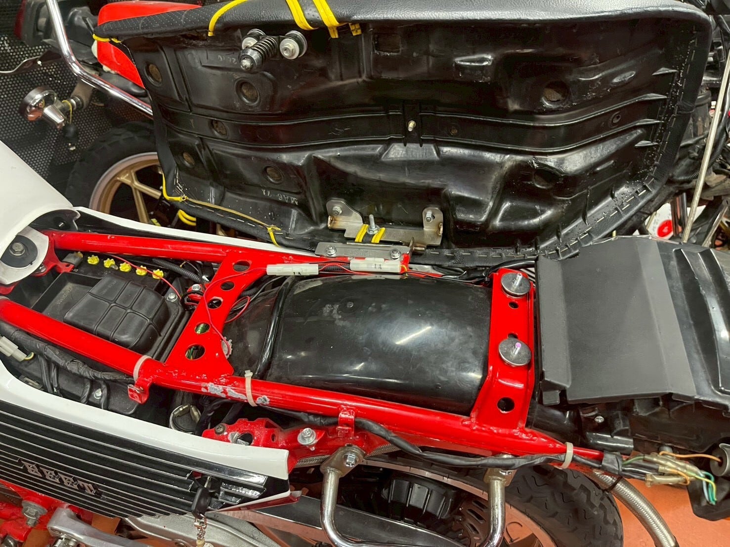 CBX400Fのシート金具になります。純正品はピンを取付した場合にロックピンを刺さないといけません。 旧車は不具合などの故障等がよくあります。