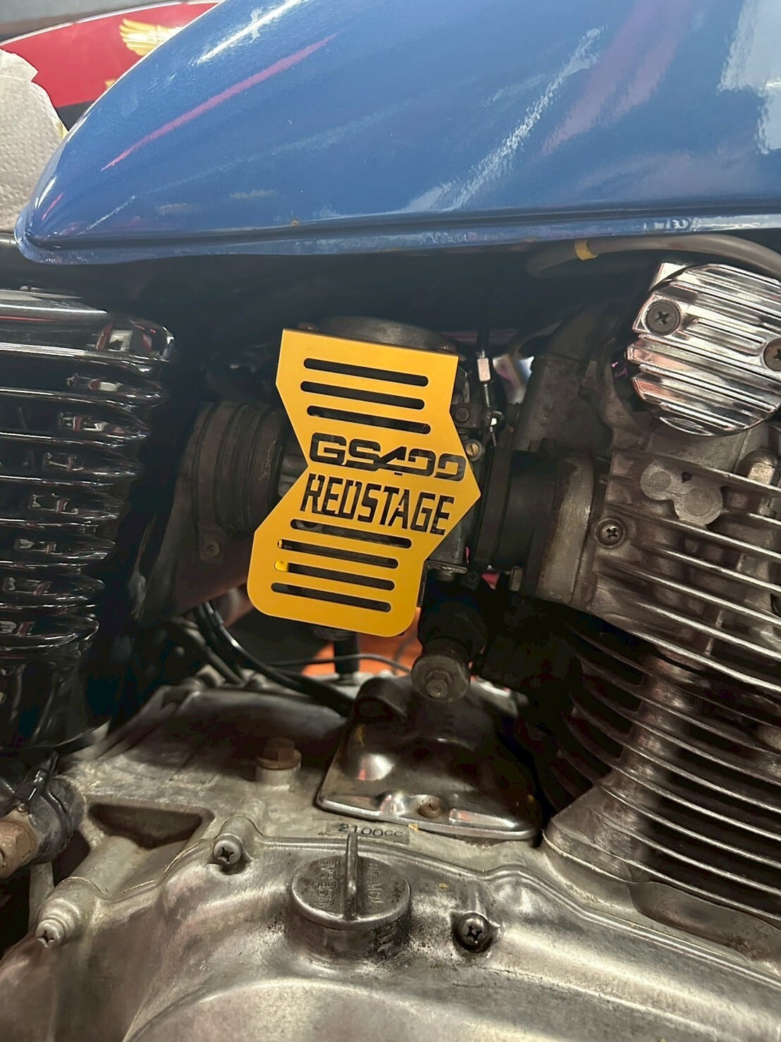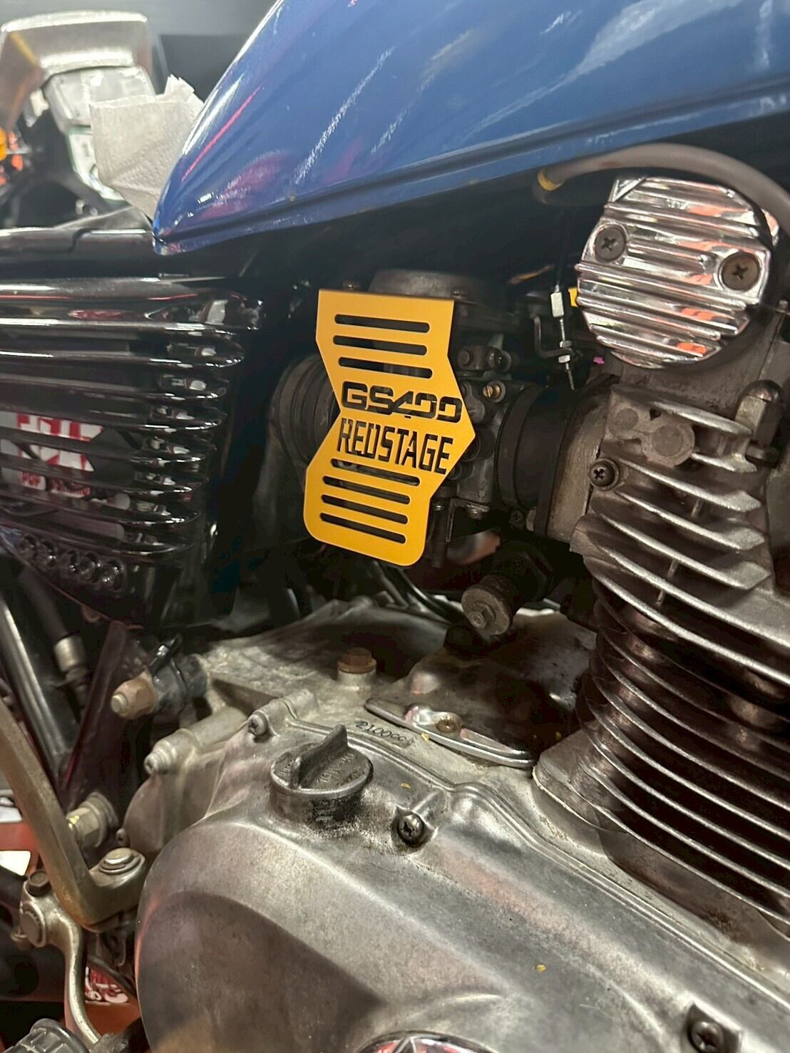 オリジナル キャブカバー GS400押しキャブ用 (アルマイト加工) GS400 REDSTAGE ロゴ入り ゴールド
