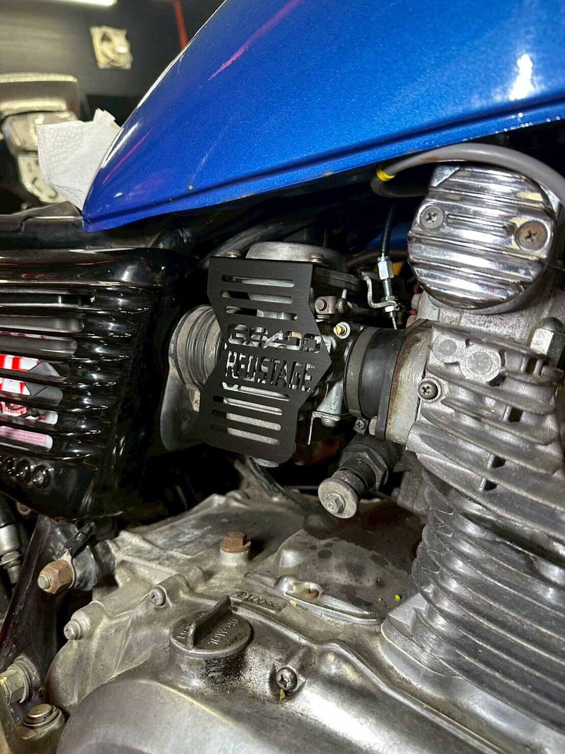 GS400用のキャブカバーになります。あなたの愛車をより引き立てるドレスアップパーツです。アルミのキャブカバーをアルマイト加工しております。